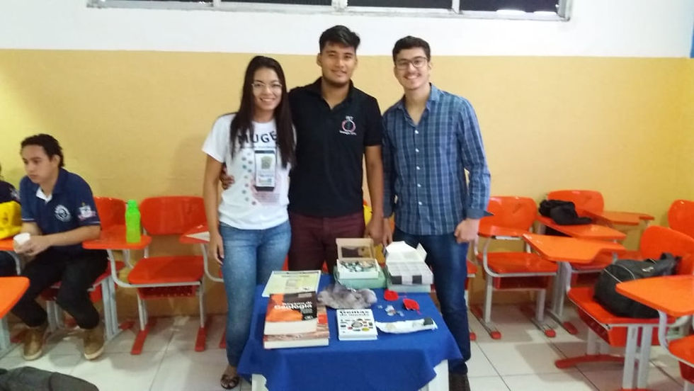 Figura 1. Os discentes, José Marcelo, Priscilla Scaff e Leandro Sepeda durante programação no Colégio Supremo, Ananindeua, Pará.